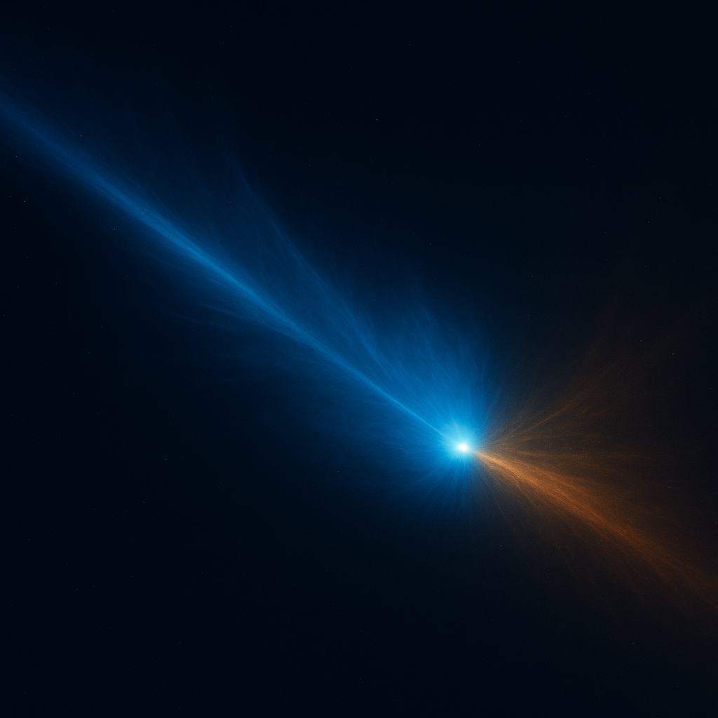 Image below: “Simulated rendering of 3I/ATLAS volatile-jet asymmetry.”