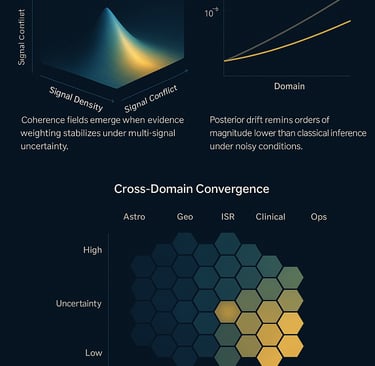 Many modern systems operate under overlapping or conflicting signals — astrophysical signatures, ISR telemetry, geophysical indicators, operational data, or clinical metrics. Classical inference pipelines often diverge as uncertainty compounds.